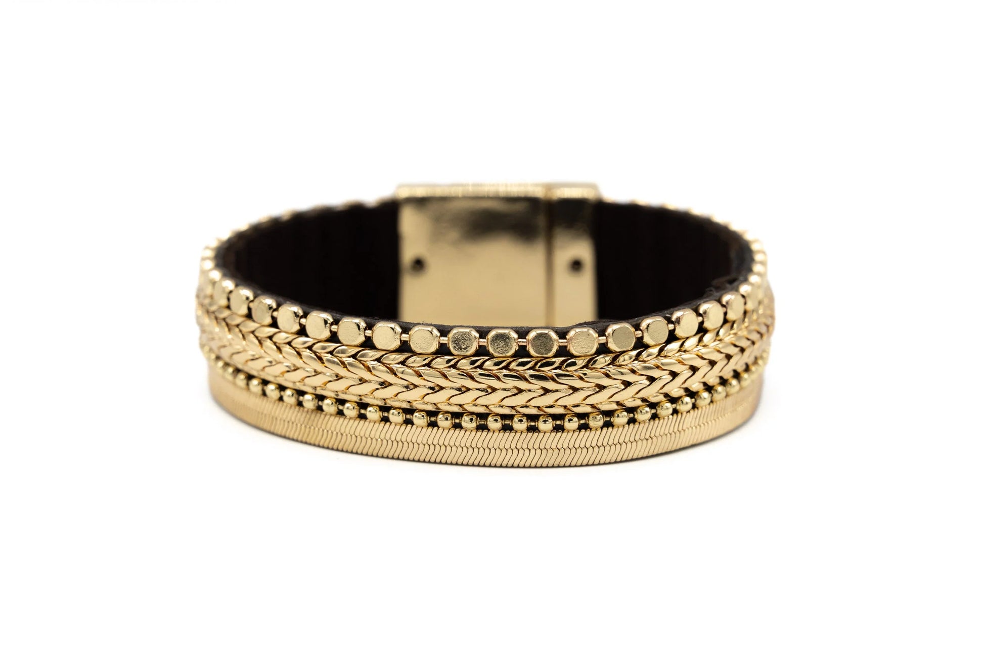 Bratara cu piele si lanturi deasupra. Inchidere magnetica.