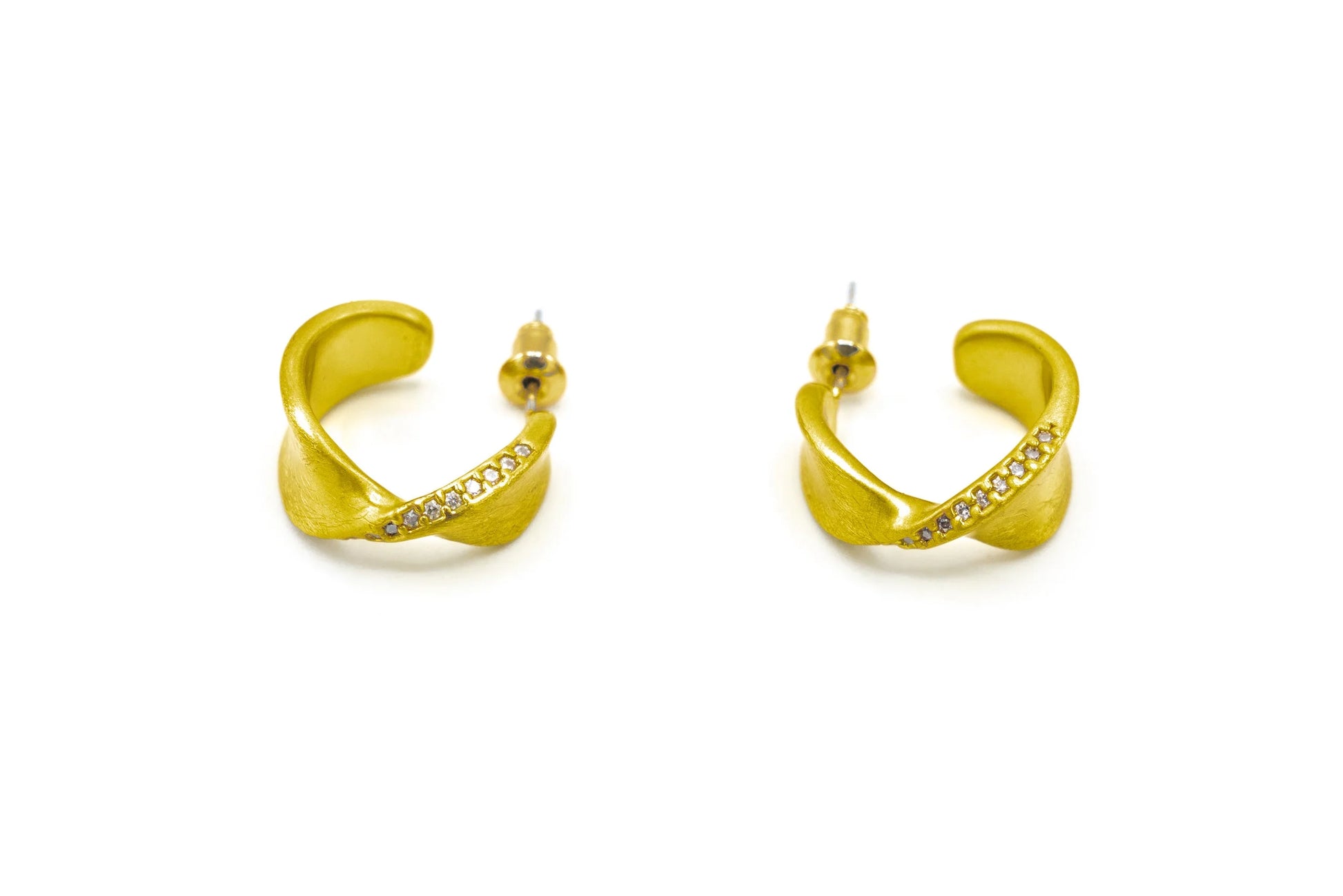 Cercei cu șurub, cu strasuri și finisaj galvanic satinat.