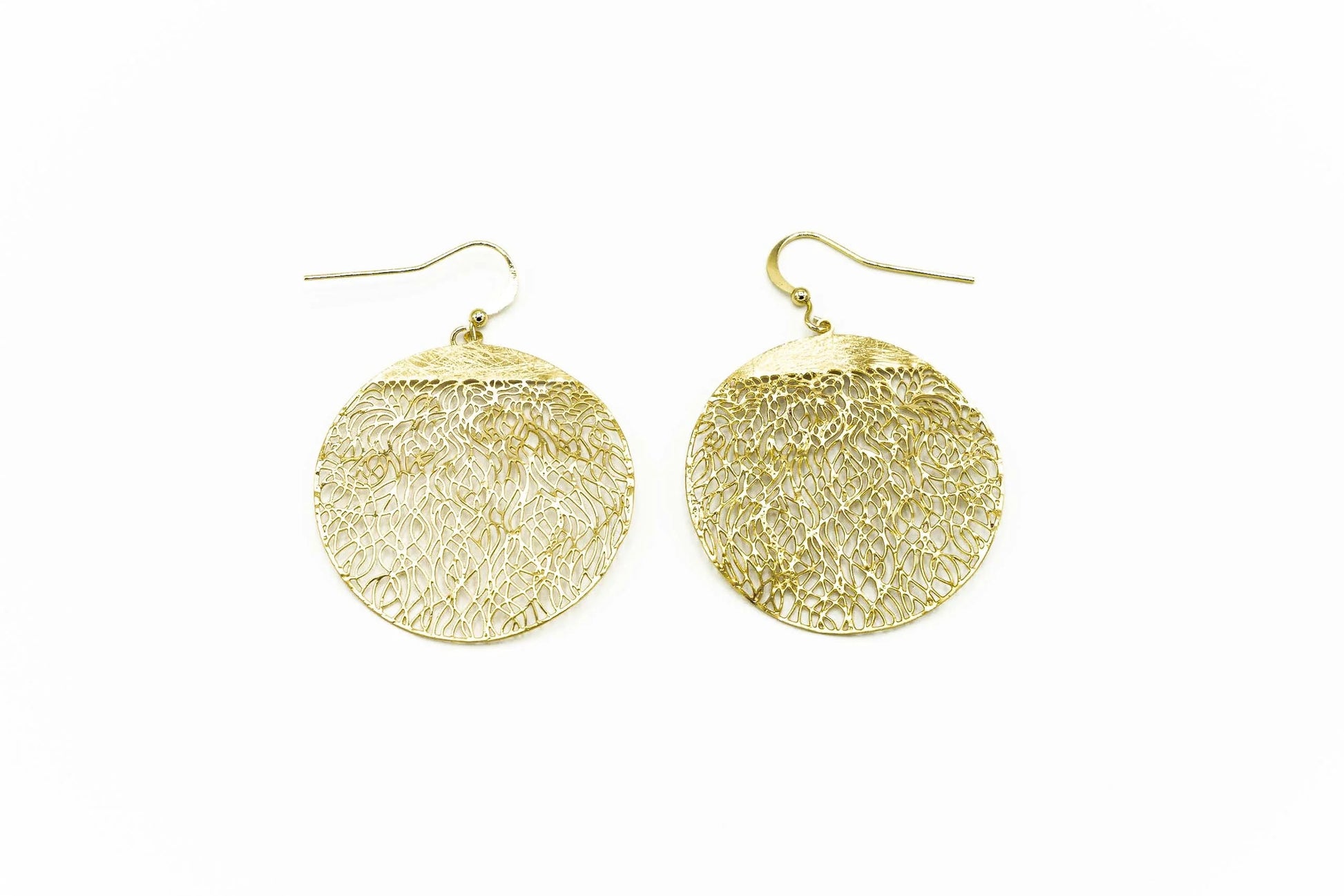 Cercei pictați, satinați și incisi manual, placați cu aur