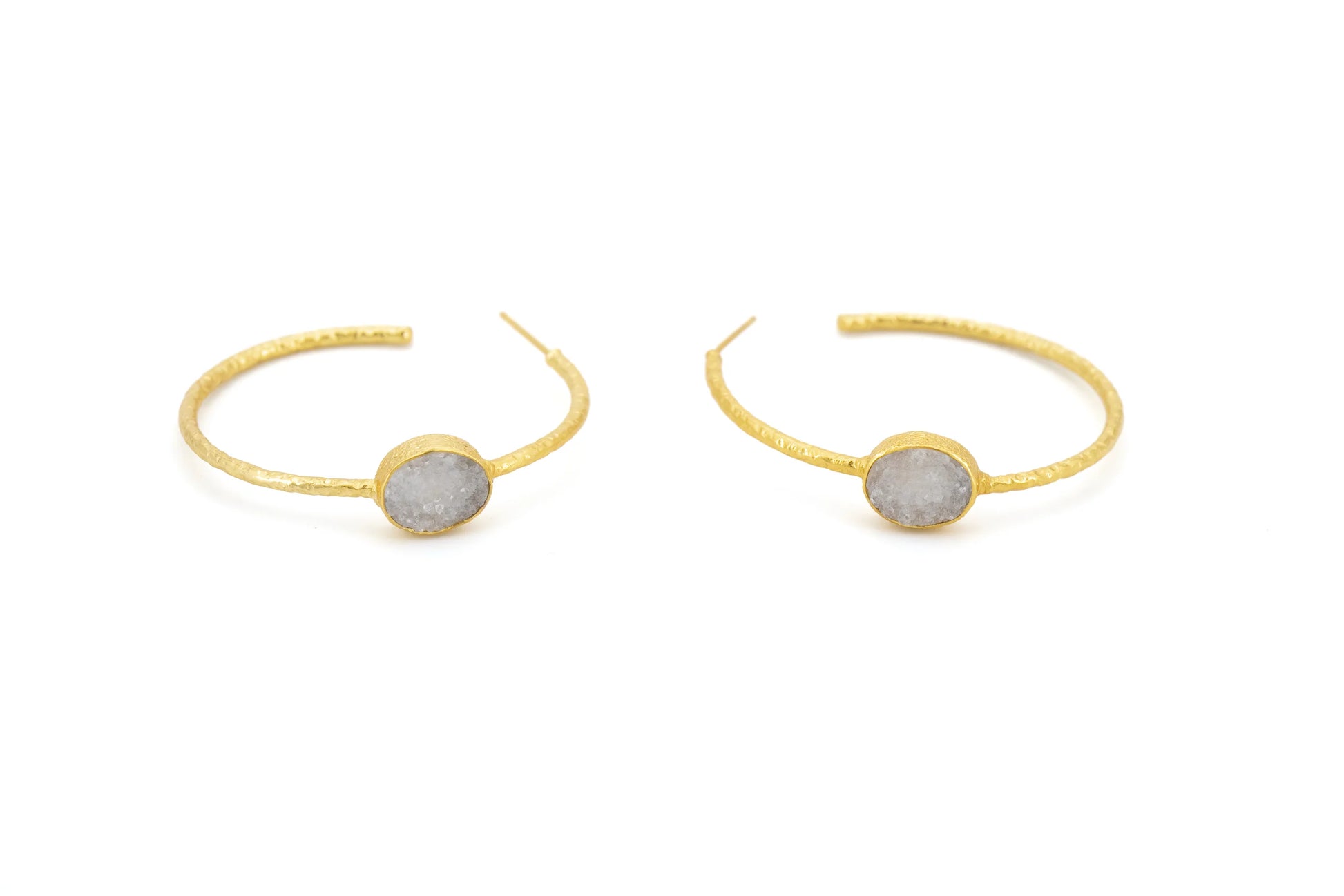 Cercei rotunzi din alamă, realizați manual, cu agat pictat în alb sau verde.