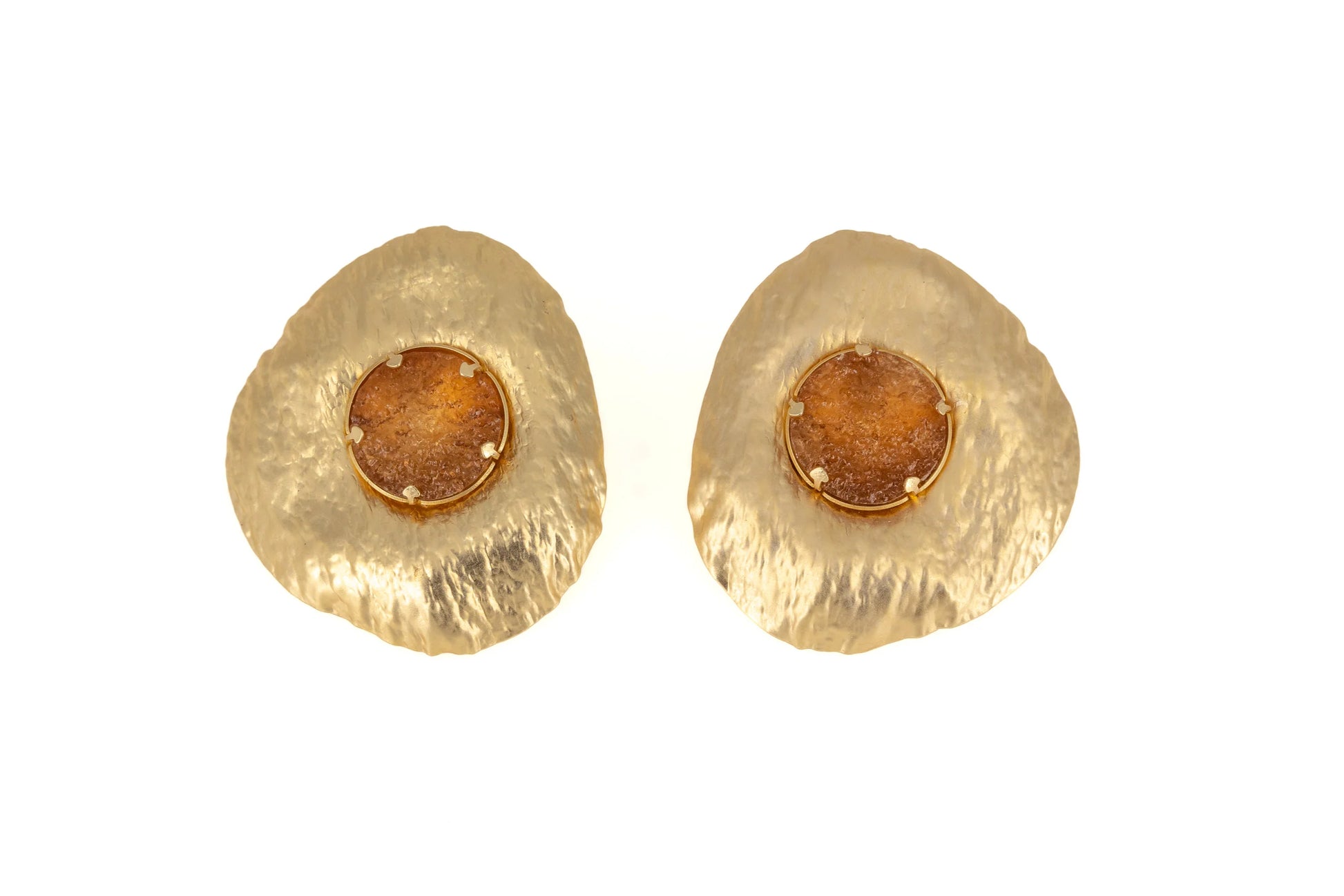 Material : alamă cu finisaj galvanic auriu mat și rășină colorată