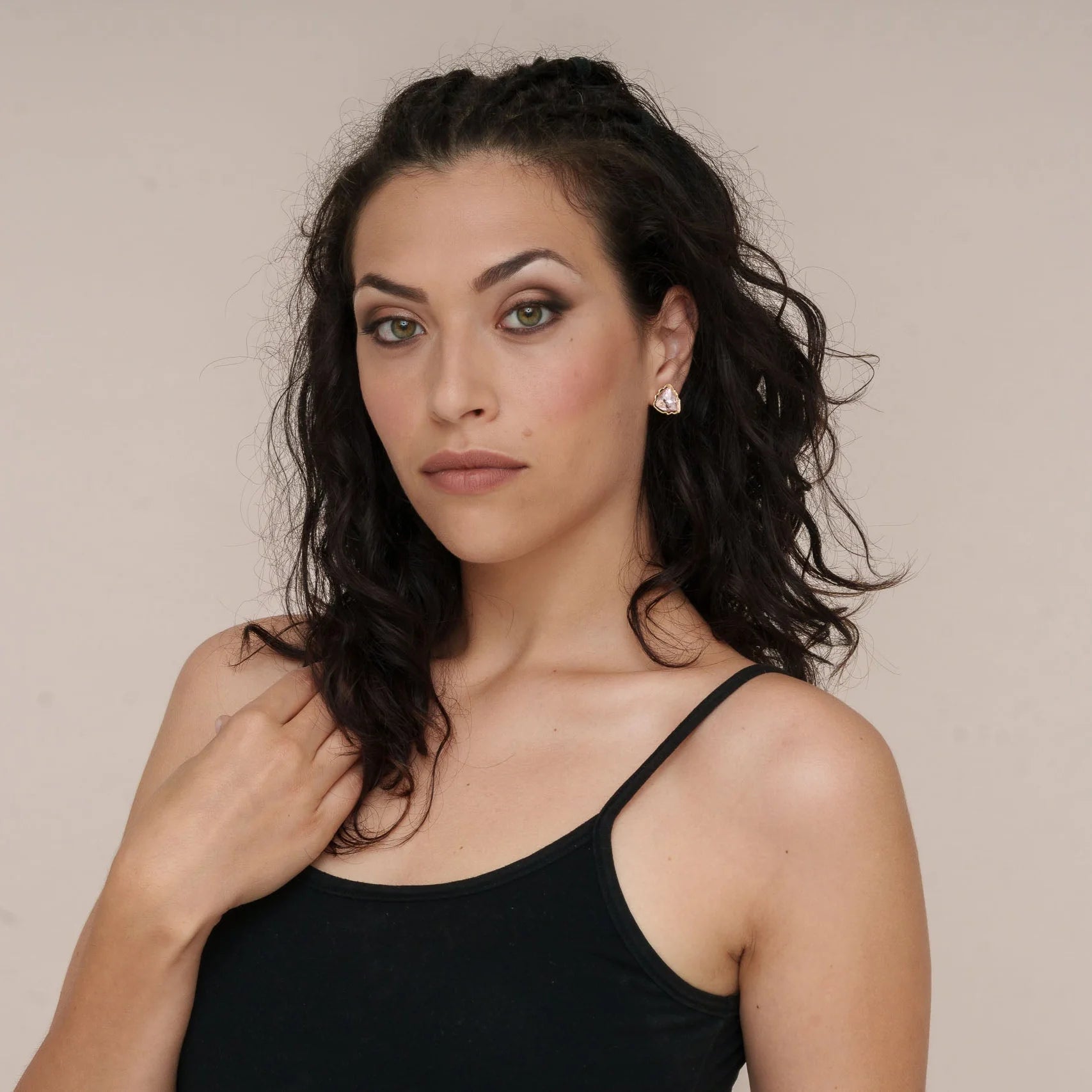 Cercei triunghiulari mați cu cristale.