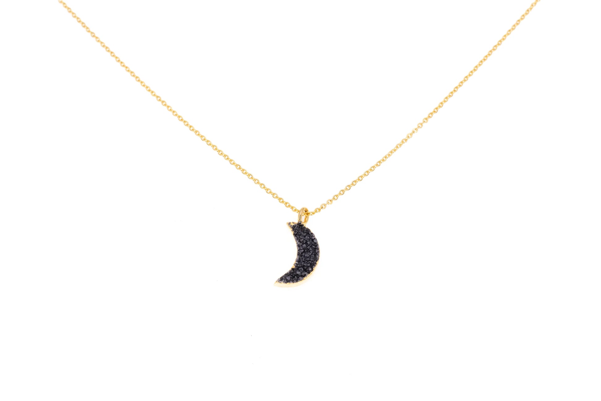 Colier din alamă, realizat manual. Pandantivul prezintă o piatră de agat vopsită în negru .
