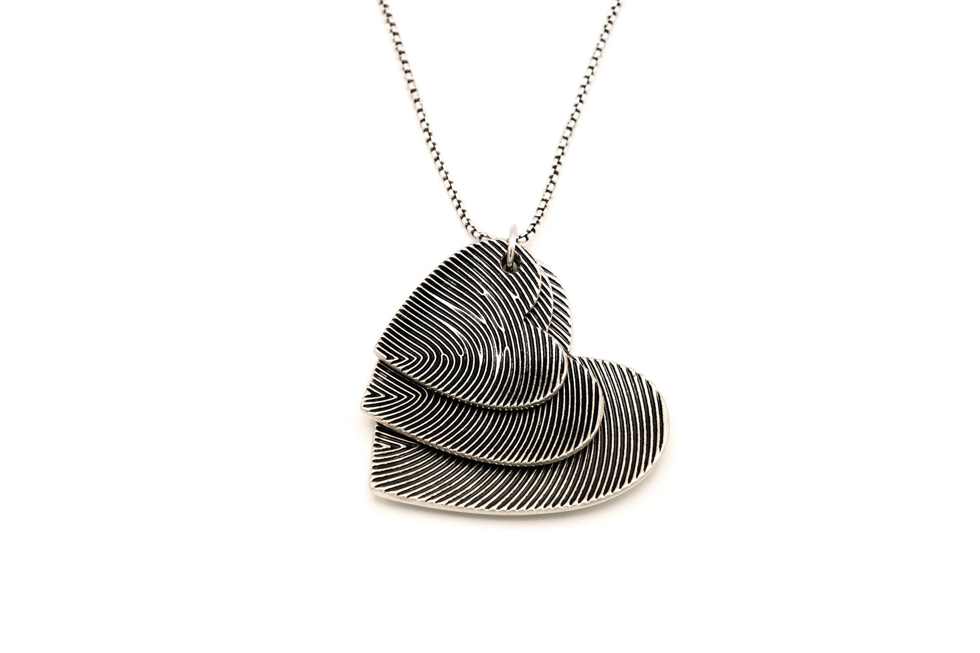 Colier lung reglabil cu trei inimioare suprapuse în trei dimensiuni diferite.