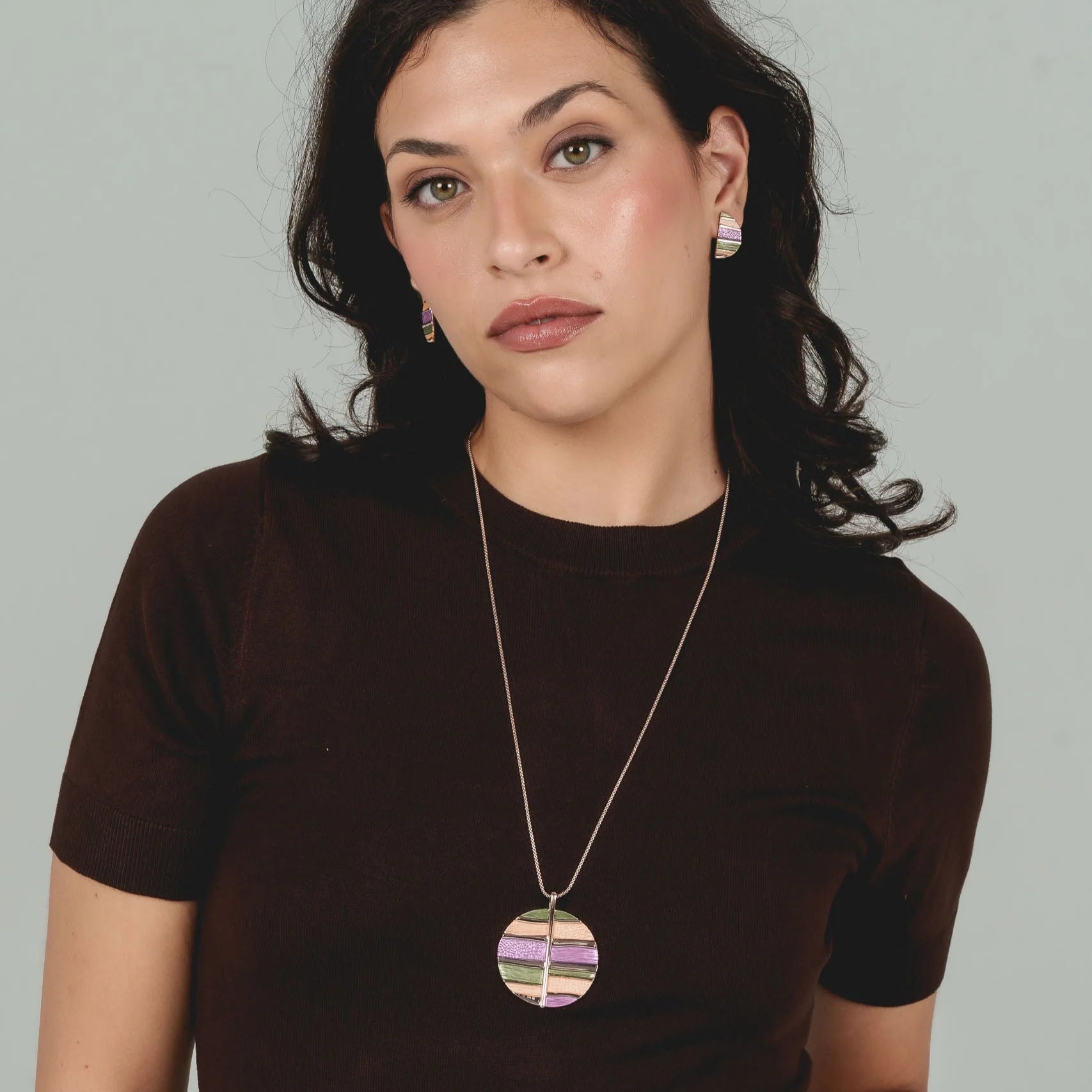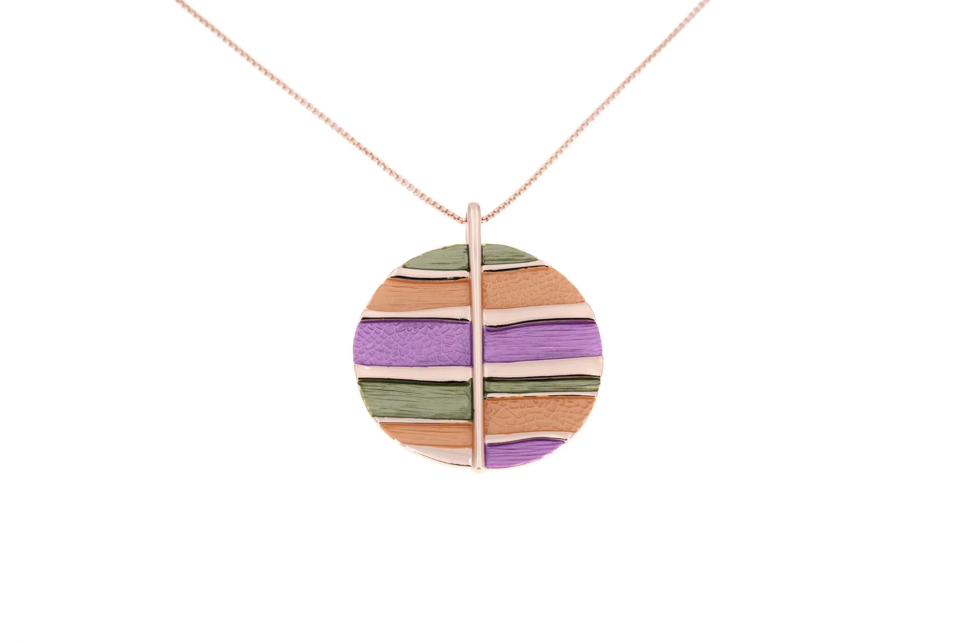 Colier lung cu pandantiv reglabil pe înălțime. Pandantiv pictat manual.