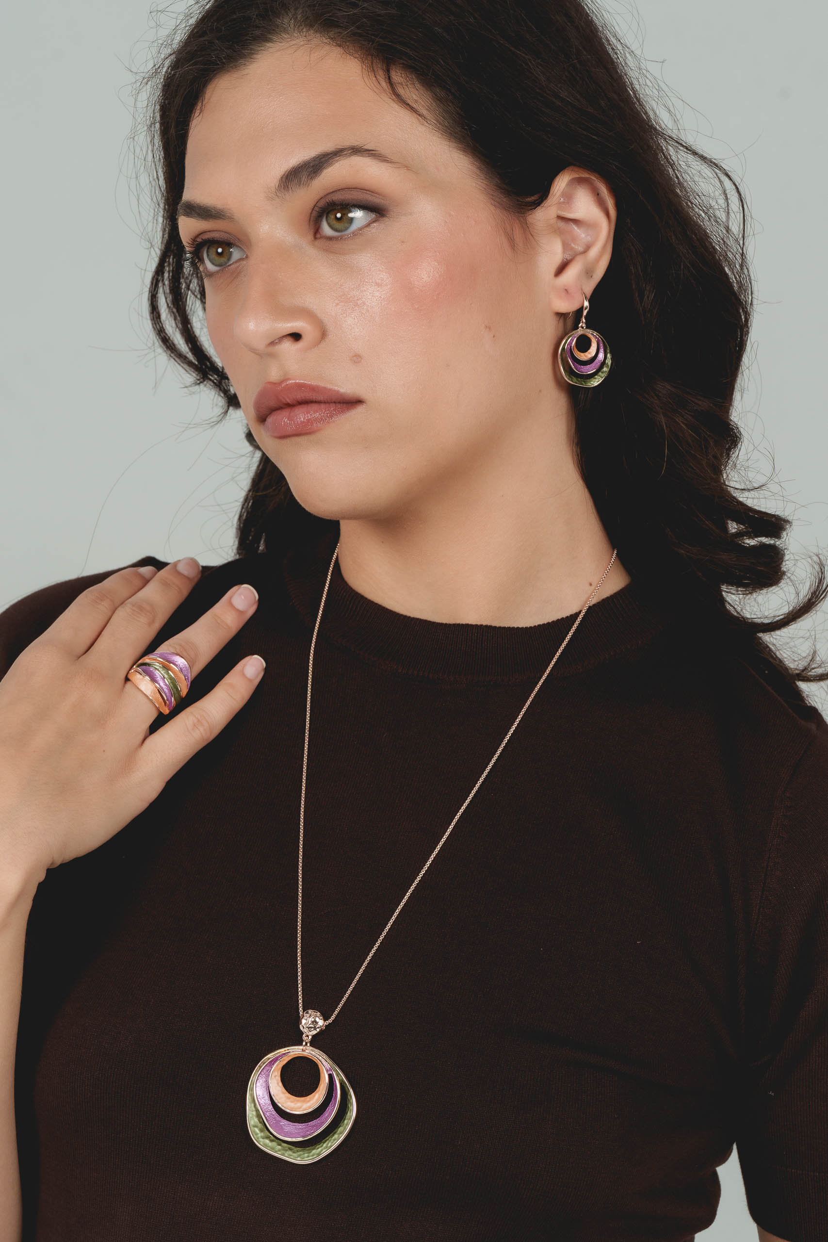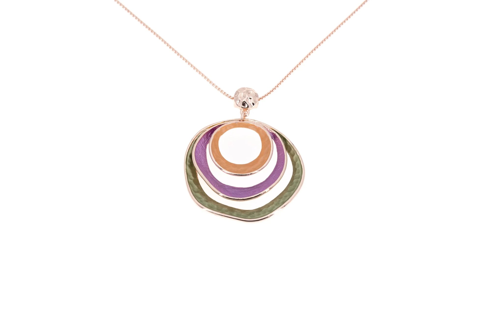 Colier lung reglabil și pandantiv pictate manual cu trei emailuri.