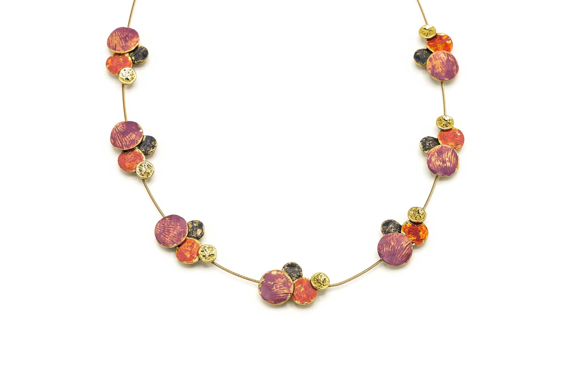Coliere cu cablu de oțel și componente pictate manual cu trei emailuri.