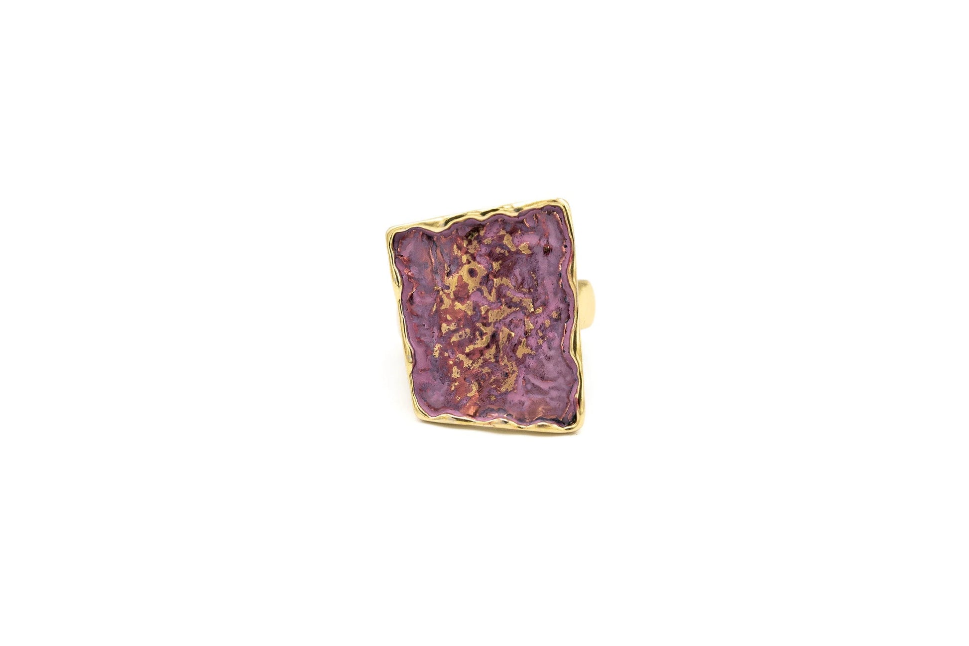 Inel dreptunghiular ciocănit. Pictat manual și finisat în aur antic.